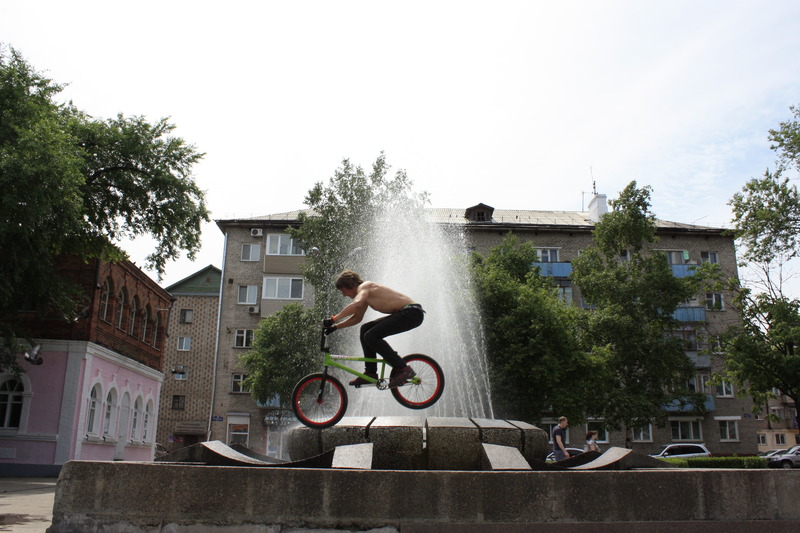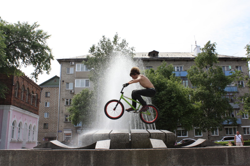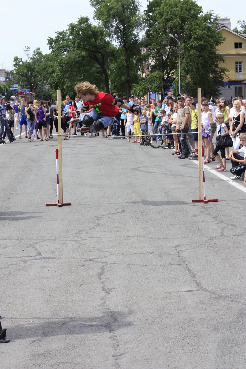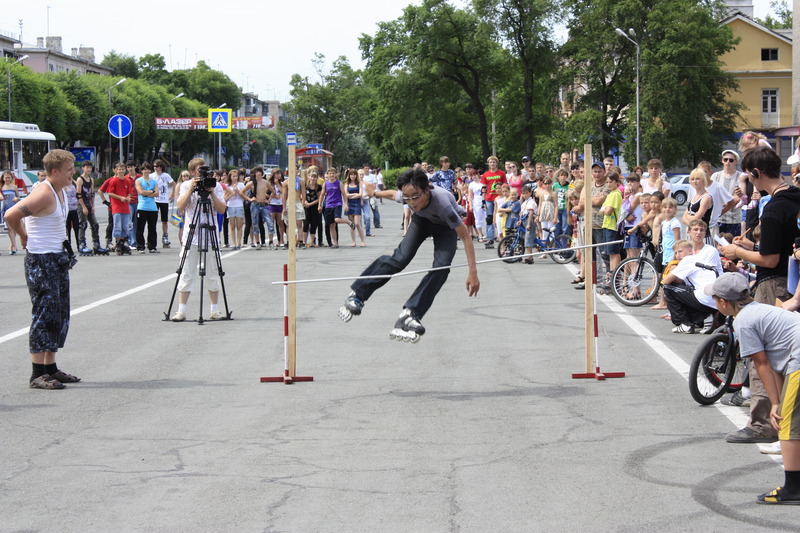 Сложность трюков от количества колес не зависит. Здесь маневры делали на двух-, четырех- и даже восьмиколесных средствах передвижения. Уссурийские экстремалы прыгали с трамплина, скользили по перилам и даже 'взлетали' над живыми препятствиями.