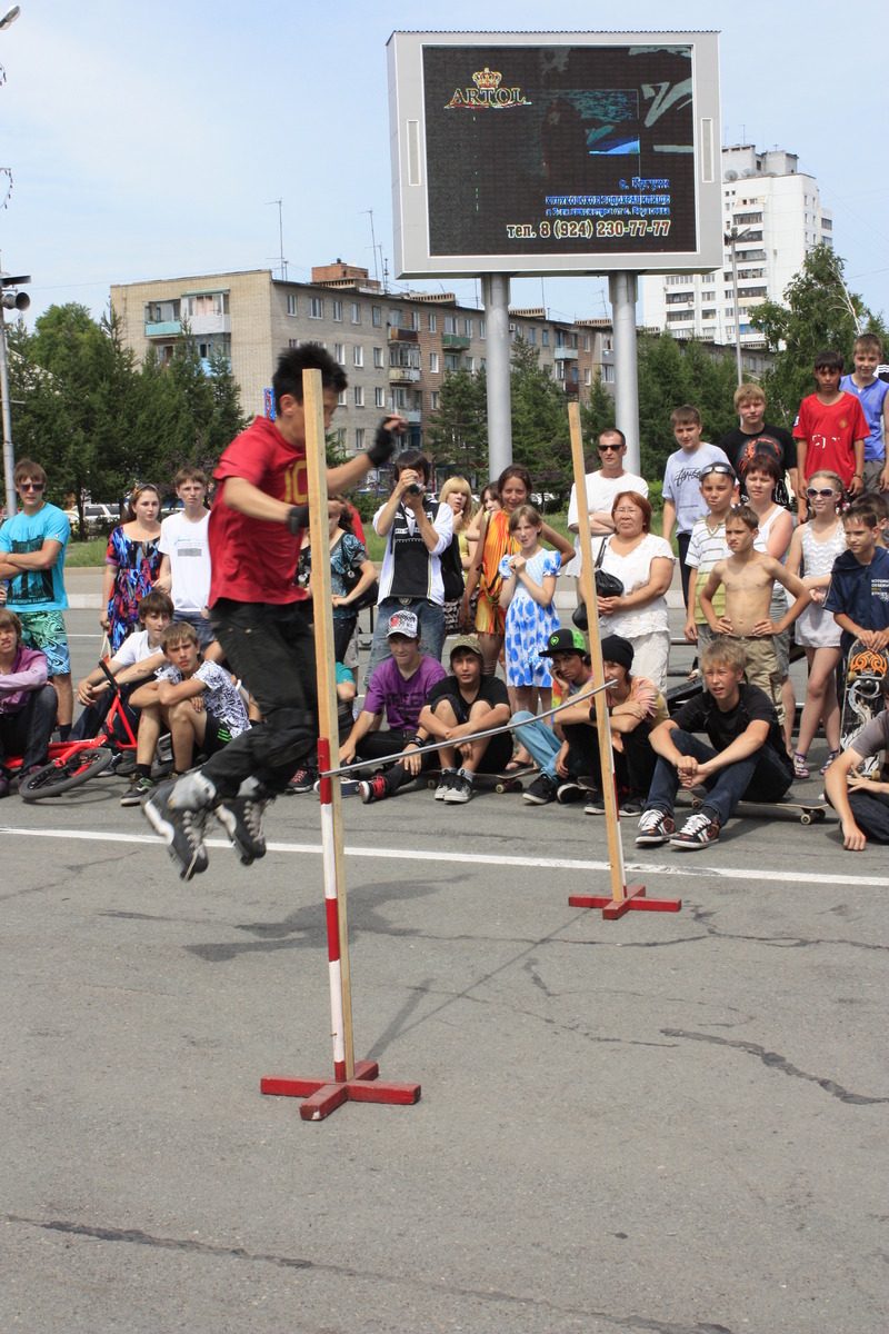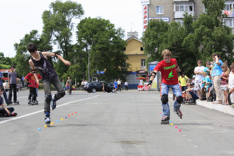 Были в этот день не только показательные выступления, но и соревнования. Для ребят на роликах сделали два этапа - 'змейка' и прыжки в высоту. А скейтеры состязались в умении точно и грамотно выполнять основные трюки.