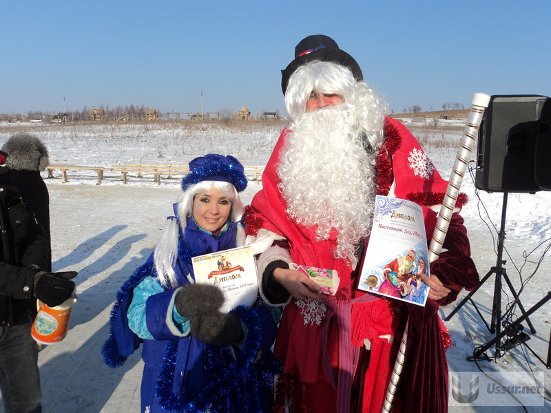 Под самый конец члены жюри, видимо, окончательно решили заморозить всех оставшихся. И очень долго определялись с выбором главных победителей Парада Дедов Морозов и Снегурочек. В итоге, победителями и обладателями главного денежного приза стали Роман Абросимов (преподаватель ДВФУ) и Елена Федченко (педагог-организатор уссурийского филиала ВГУЭС).